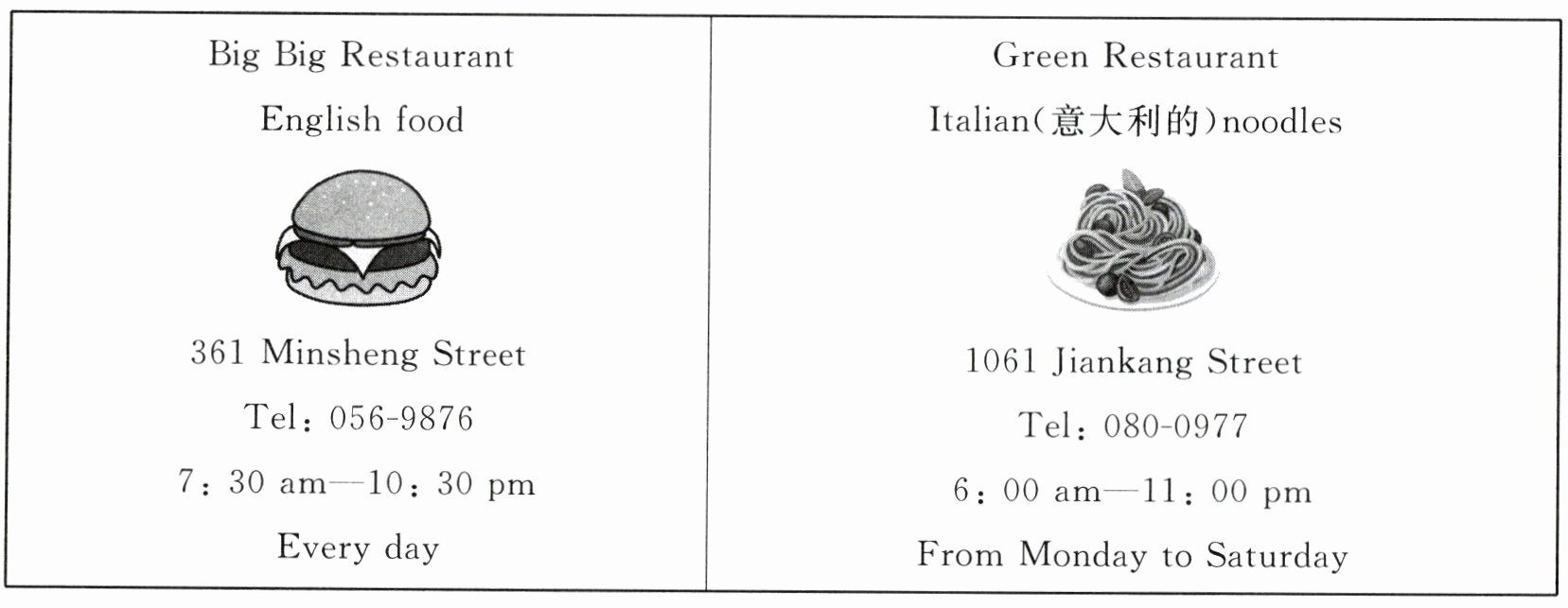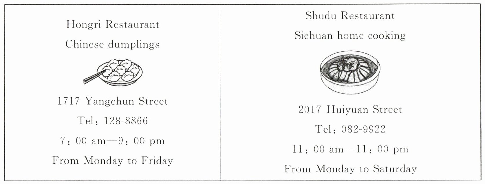 ( )50.It's Sunday today.Which restaurant can you choose to have dinner?