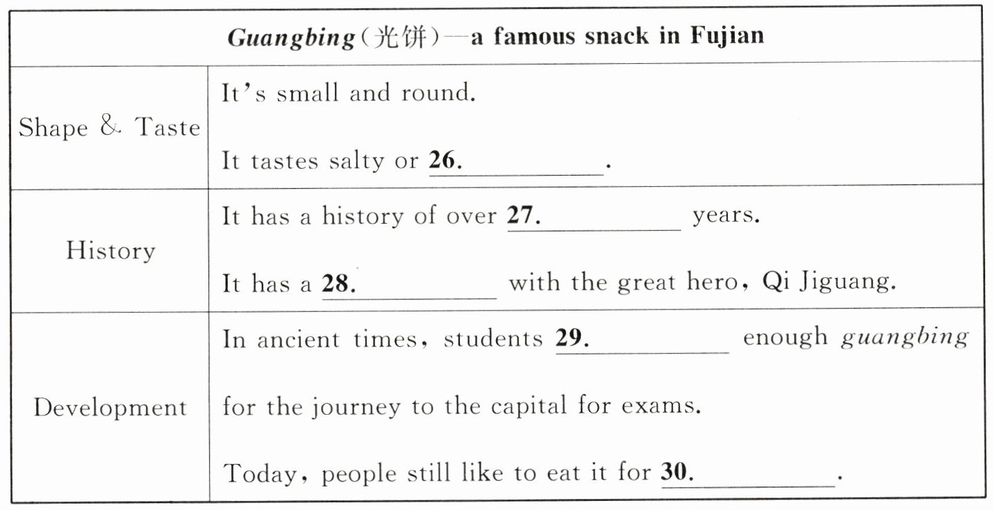 (五)26. sweet 27. 400 28. connection 29. prepared 30. breakfast