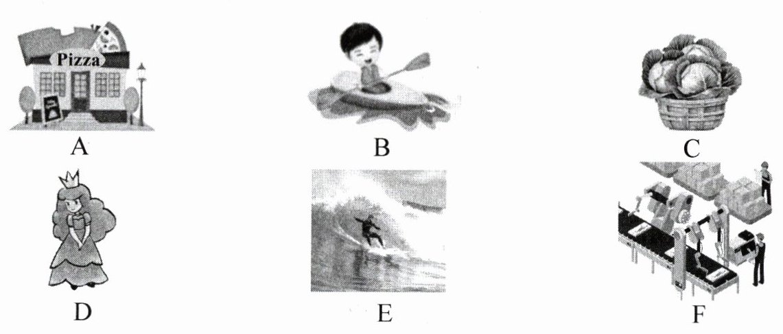 你将听到五个句子,请选出与所听句子内容相符的图片,有一幅图是多余的。每个句子读两遍。