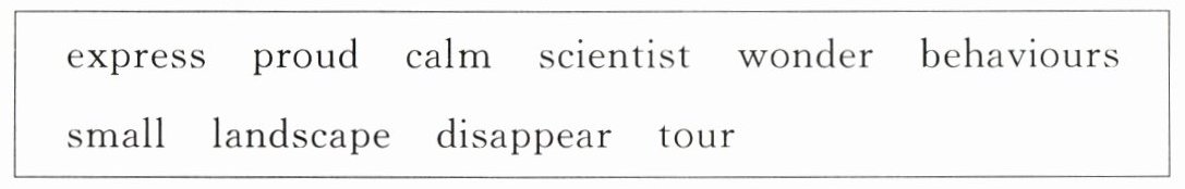 66. scientists 67. landscape 68. behaviours 69. tours 70. calm 71. express 72. proud 73. wonders 74. disappear 75. smaller