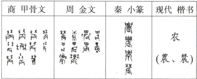 真题1 (2023·高考湖北卷,T1)象形文字在一定程度上可以反映创字时的生态环境、经济生活和思想观念等。下表是“农”字的演变历程,其创意是在树木众多的地方以蜃(蚌壳)制工具从事劳作。“农”字的创制可反映当时 ( )