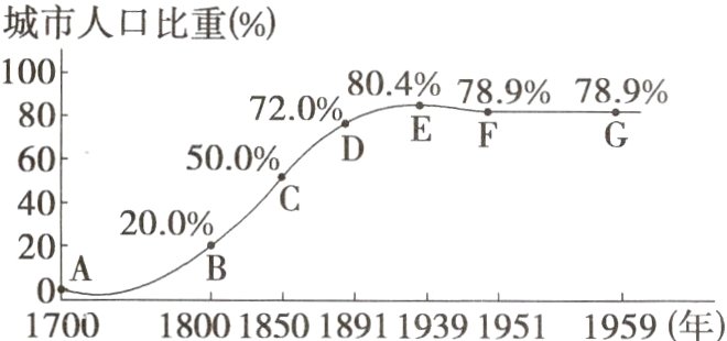 史料 英国城市化发展进程曲线(1700−1959年)