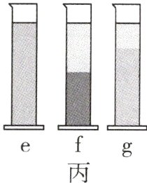 (3)先在量筒里装一半清水,再在水下面注入硫酸铜溶液,图丙所示是小明观察到的溶液在“实验开始时”“静放10日后”“静放30日后”所呈现的现象,其中图______(选填“e”“f”或“g”)表示溶液“静放30日后”的实验现象,该现象主要说明了________________________。