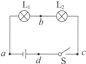 11.如图所示,开关S闭合时,小灯泡L₁、L₂都不亮,用一段导线的两端接触a、b两点时,两小灯泡都不亮;接触b、c两点时,两小灯泡也不亮;接触c、d两点时,两小灯泡都亮。对此,下列判断中可能的是( )