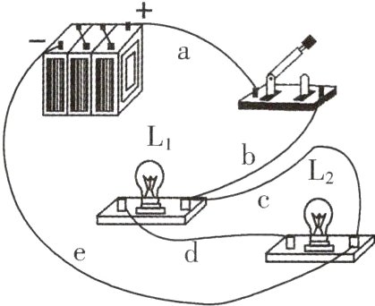 (3)将与开关连接的b导线移到灯泡L₁左端的接线柱上,此时两灯并联。