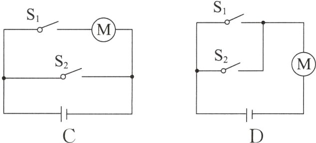 A 解析:根据题意可知,只有在两个开关都闭合的情况下,闸机门才自动打开,这说明两个开关相互影响,是串联的,然后与电动机串联,故A正确。