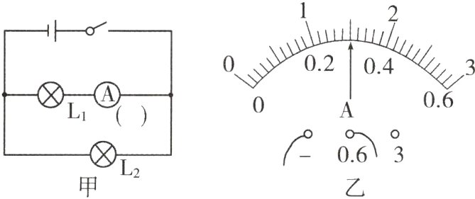 (3)图甲中电流表测量的是______(选填“L₁”或“L₂”)的电流,电流表右端(括号位置)应为电流表的______(选填“正”或“负”)接线柱。