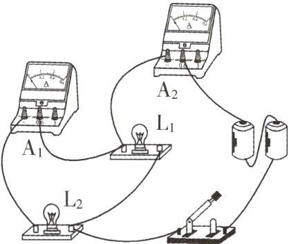 6.关于如图所示的电路有以下判断:①L₁和L₂两灯泡串联;②L₁和L₂两灯泡并联;③电流表A₁测灯泡L₁的电流;④电流表A₂测电路中的总电流。其中正确的有( )