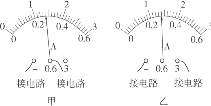 4.(教材P48T3改编)图甲所示电流表示数为______A,图乙所示电流表示数为______A。