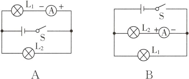 (3)由图甲可知,灯L₁、L₂并联,灯L₁与电流表串联,因此电流表测L₁的电流;连接电流表时必须使电流从“+”接线柱流进电流表,从“-”接线柱流出电流表,因此电流表右端应为电流表的正接线柱。