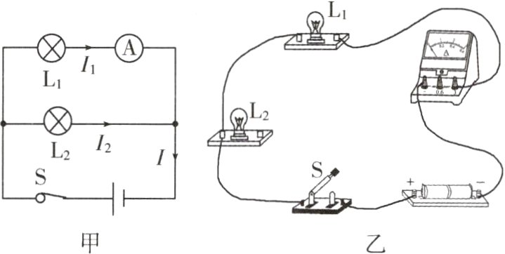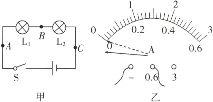 (3)电流表应________(选填“串联”或“并联”)在被测电路中,在测量A处的电流时,发现电流表的指针偏转情况如图乙所示,原因是________________________。
