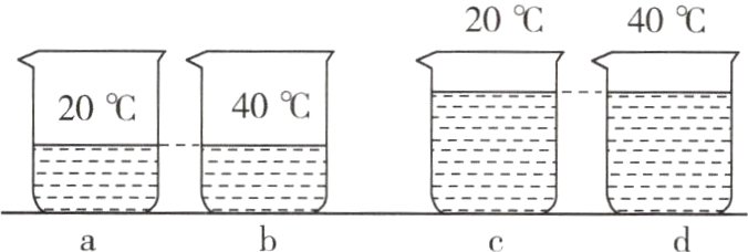 d 解析:a与b中水的质量相同,但b中水的温度比a的高,所以b中水的内能大于a中水的内能;b与d中水的温度相同,但d中水的质量大于b的,所以d中水的内能大于b中水的内能;c 与d中水的质量相同,但d中水的温度高于c的,所以d中水的内能大于c的。