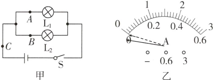 (1)根据实验电路图,用笔画线将图乙中的实物图连接起来,且使电流表测A处电流。