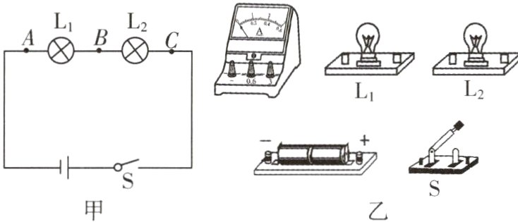 2.某同学在探究“串联电路的电流特点”时,将两个规格不同的小灯泡L₁、L₂串联起来,实验电路图如图甲所示。