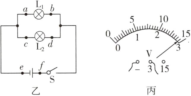 (2)如图乙所示的电路中,将电压表并联在a、b两点时,闭合开关,电压表的示数如图丙所示,电压表的示数为________V。