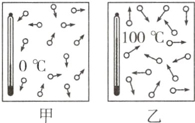 ①下图表示不同时刻某物体内部分子运动情况(箭头越长代表分子运动越快),________(选填“甲”或“乙”)图的分子动能较大。
