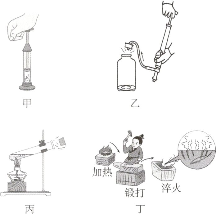 D.图丁,古人锻造铁器,淬火的过程水的内能减少