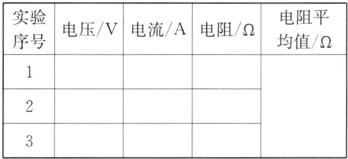 实验序号 电压/V 电流/A 电阻/Ω 电阻平均值/Ω