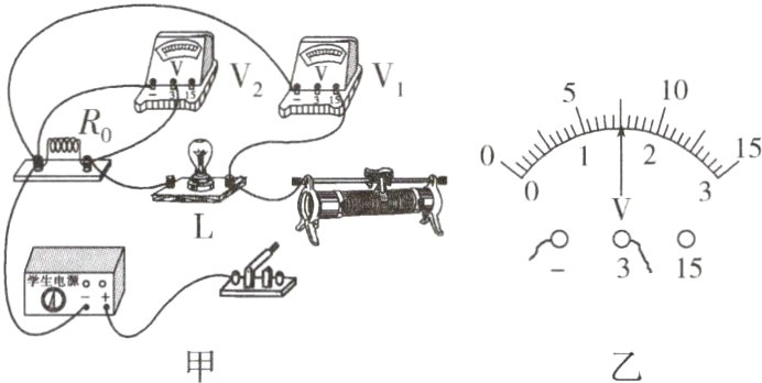 (3)排除故障后,闭合开关移动滑片,电压表$V_{2}$示数如图乙所示为________$V$,此时通过小灯泡的电流为________$A$。