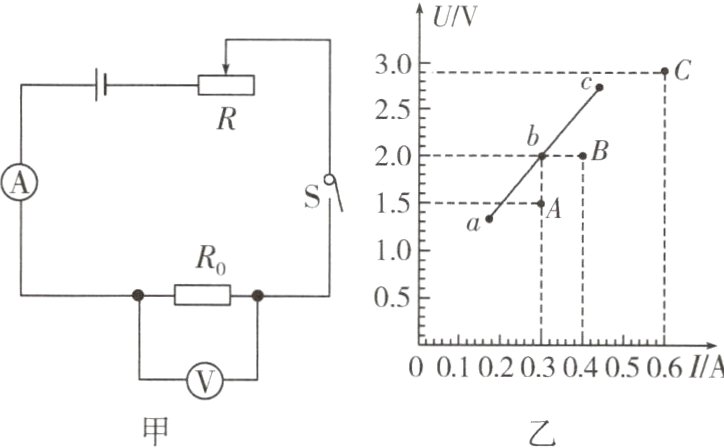 3.(跨学科实践)某小组同学在进行“伏安法”测电阻实验时,连接了如图甲所示的电路,闭合开关,移动滑动变阻器滑片,多次测量并记录实验数据。小组同学第一次实验测得的数据如图乙中的a、b、c,发现电压表未调零。将电压表调零后,重做实验,第二次测得的数据如图乙中的A、B、C。