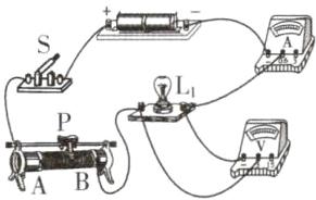 (1)某同学将灯泡$L_1$接入图甲电路,请你用笔画线代替导线,将实物电路连接完整。