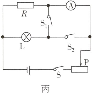 (3)同组的小月同学设计了一个电路,如图丙,也测出了该小灯泡正常发光时的功率,其中定值电阻的阻值$R = 25\ \Omega$,正确操作步骤如下: