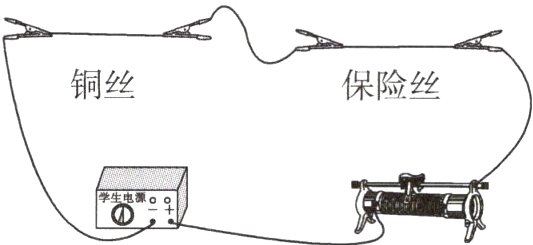 6.保险丝由电阻率大、熔点低的金属制作而成。如图所示,将长短、粗细均相同的保险丝和铜丝分别用金属夹接到线路板上,它们是______联的,保险丝的电阻比铜丝的________(选填“大”或“小”),闭合开关,移动滑动变阻器的滑片,发现保险丝熔断而铜丝完好,所以在家庭电路中________(选填“能”或“不能”)用铜丝代替保险丝。