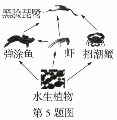 5. 红树林是珍稀水禽的重要栖息地。如图为红树林中部分生物形成的食物网,据图判断黑脸琵鹭属于 ( )