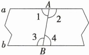6(2024·三明期末)如图,为判断一段纸带的两边a,b是否平行,小亮在纸带两边a,b上分别取点A,B,并连接AB. 下列条件中能判断a//b的是( )