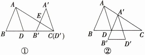 12 如图①,平移三角形ABD,使点D沿BD的延长线平移至点C,得到三角形A'B'D',A'B'交AC于点E,AD平分∠BAC.