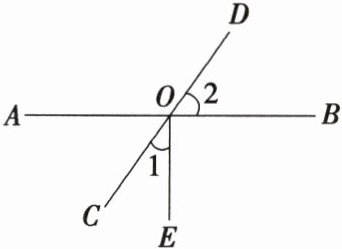 1(2024·雅安)如图,直线AB,CD交于点O,OE⊥AB于O.若∠1 = 35°,则∠2的度数是( )