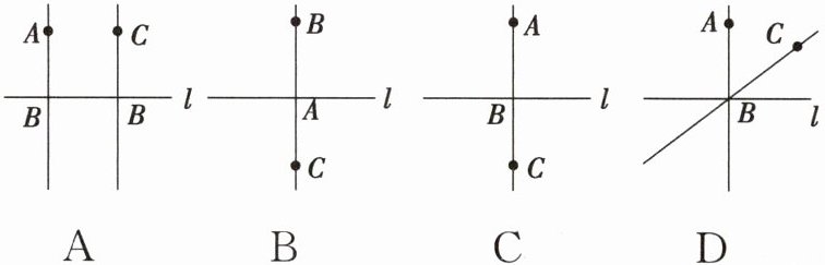 1 已知直线AB,CB,l在同一平面内,若AB⊥l,垂足为B,CB⊥l,垂足也是B,则符合题意的图形可以是( )
