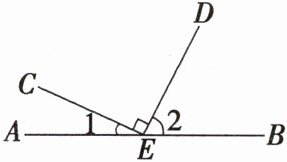 2(2024·韩城模拟)如图,点A,E,B在同一条直线上,CE⊥DE,若∠1 = 25°,则∠2的度数是( )