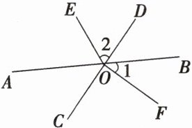 3 如图,直线AB,CD相交于点O,OE平分∠AOD,FO⊥CD于点O,∠1 = 40°,求∠2的度数.
