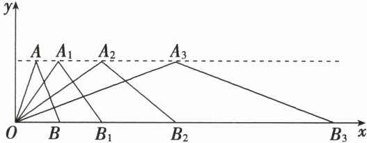 4 如图,在平面直角坐标系中,第一次将三角形OAB变换成三角形OA₁B₁,第二次将三角形OA₁B₁变换成三角形OA₂B₂,第三次将三角形OA₂B₂变换成三角形OA₃B₃.已知A(1,4),A₁(2,4),A₂(4,4),A₃(8,4),B(2,0),B₁(4,0),B₂(8,0),B₃(16,0).