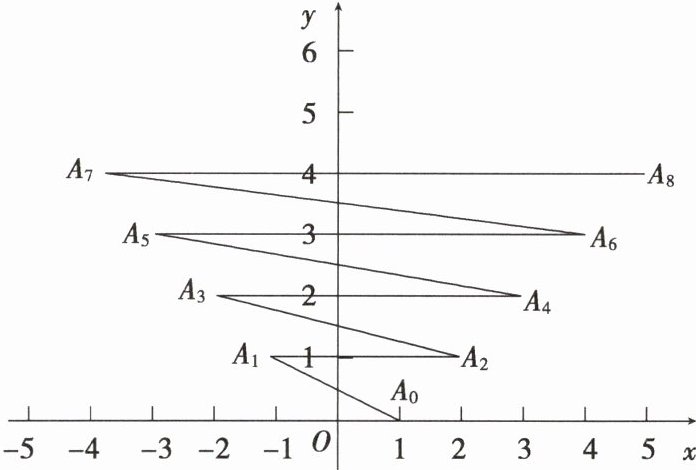 2 (2024·禹城模拟)如图,在平面直角坐标系内有点A₀(1,0),点A₀第一次跳动到点A₁(-1,1),第二次点A₁跳动到A₂(2,1),第三次点A₂跳动到A₃(-2,2),第四次点A₃跳动到A₄(3,2)……依此规律跳动下去,则点A₂₀₂₃的坐标是________.