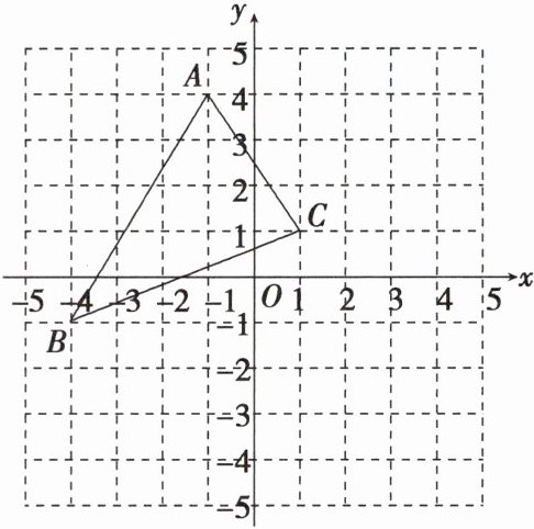 10(2024·长沙期末)如图,三角形ABC的顶点A(-1,4),B(-4,-1),C(1,1),若三角形ABC向右平移4个单位长度,再向下平移3个单位长度得到三角形A'B'C',且点C的对应点坐标是C'.