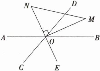 10 如图,AB,CD,NE相交于点O,OM平分∠BOD,∠MON = 90°,∠AOC = 50°.