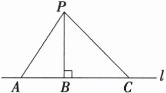 7 (2024·黔南州一模)如图,点A,B,C在直线l上,PB⊥l,PA = 5 cm,PB = 4 cm,PC = 6 cm,则点P到直线l的距离是______cm.