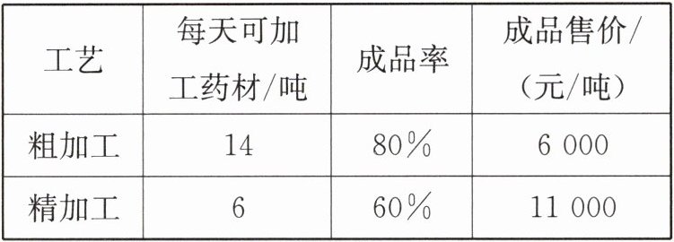 (注:①成品率80%指加工100吨原料能得到80吨可销售药材;②加工后的废品不产生效益)