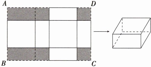操作:如图所示,矩形纸片ABCD中,AB = 4 dm,AD = 6 dm,剪掉阴影部分后,剩下的纸片可折成一个底面是正方形的有盖长方体盒子.
