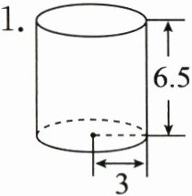 1. $3.14×3×2×6.5 + 3.14×3^{2}×2 = 178.98(cm^{2})$