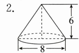 2. $\frac{1}{3}×3.14×(\frac{8}{2})^{2}×6 = 100.48(cm^{3})$