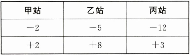 3. 下表记录了某条线路的公交车途经甲站、乙站、丙站时的载客数的变化情况,其中正数表示上车人数,负数表示下车人数。