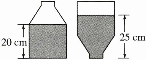 5. 一个下部是圆柱形的玻璃瓶,瓶高30cm,现装有300mL的水,玻璃瓶正立和倒立的情形如下图所示,这个瓶子能装水多少毫升?