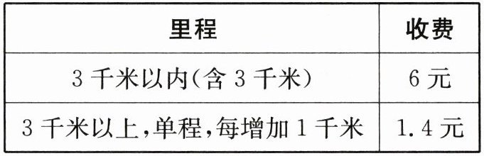 于梦和妈妈乘出租车从自己家到外婆家,共付费13元。于梦家到外婆家的路程最远是多少千米?