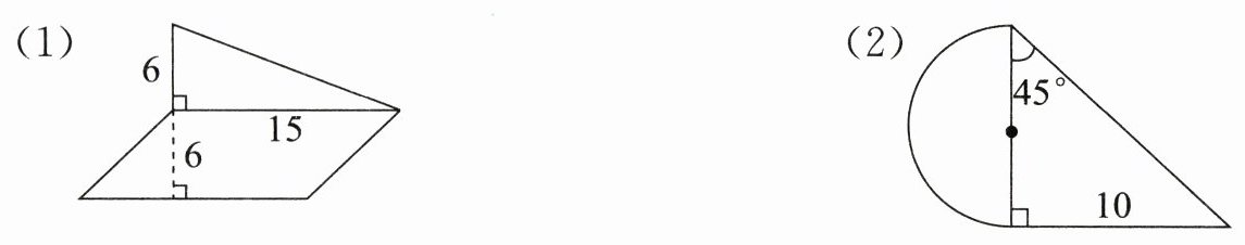 (2)$\frac{1}{2}×10×10+\frac{1}{2}×3.14×5^{2}=89.25(cm^{2})$