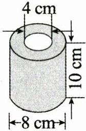 $3.14×[(\frac{8}{2})^{2}-(\frac{4}{2})^{2}]×10×10 = 3768(cm^{3})$