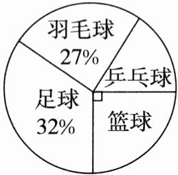 5. 如图是某小学六年级男生喜欢的球类运动统计图,已知喜欢乒乓球的有80人,那么喜欢足球的有( )人。