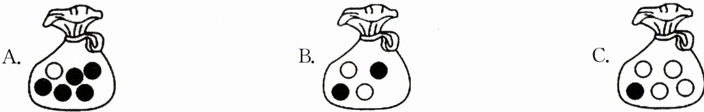 1. 从第( )个口袋里任意摸出一个球,摸出黑球的可能性最小。